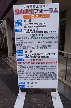 カイルはこれから岡山県久米南町上籾(かみもみ)地区で、地域の人たちと共にパーマカルチャーによる里山創生を始動させます。今回の里山創生フォーラムは、そのためのキックオフイベントです。
