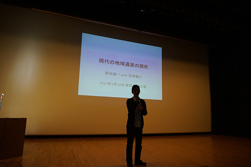 午前中は東京農業大学の栗田健一先生から「地域通貨の最新事情」、僕からは「あわマネー15年の軌跡 ~深化するネットワーク型コミュニティ~」、北陸先端科学技術大学院大学の小林重人先生から「21世紀における日本の地域通貨の変化」と3つの講演でした。そして、午後は各地域の地域通貨の紹介と参加者全員が大きな輪になってのトークセッションでした。