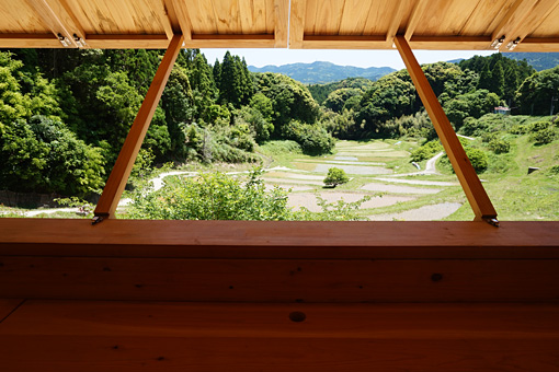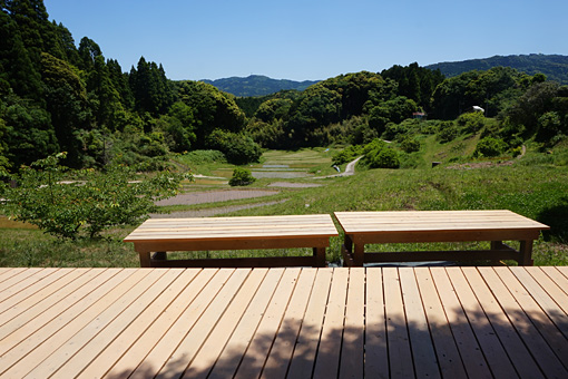 今年は棚田の一番上に、昨年のHOUSE VISIONで良品計画さんが展示した棚田オフィスが移築され、さらに棚田オフィスの横には能舞台のようなウッドデッキも完成しました。