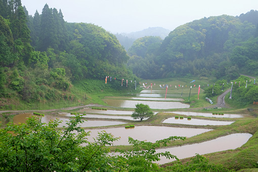 このところ鴨川は雨が全く降らず日照りだったので、天水棚田にとっては嬉しい恵みの雨ですが、田植えイベントにはツライところです。
