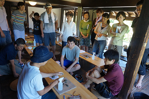 陶芸体験の日、みなさんは無心となって作陶し、古民家は静寂に包まれました。