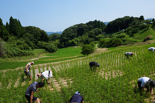 「有機米の会」も「自然酒の会」も、午後からは田の草取りです。