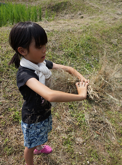 子供たちも頑張ってくれましたが、途中飽きてしまった子供たちは棚田オフィスへ行って涼んだり、ウッドデッキで走り回ったり、虫を探したり、里山で遊んでいました。