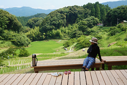 「わぁ~、手入れがされていてキレイですね。実家のまわりは、ドンドン耕作放棄地になってしまいました。」と言って、棚田を見つめながらこうつぶやきました。