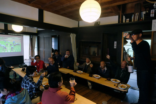 昼食には昨年、釜沼北集落のお米を地元の亀田酒造で仕込み、無印良品の店舗で販売した純米酒「日本酒」で乾杯をしました。