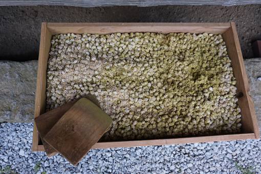 そして、米醤油搾りと並行して、来年の麦と米の2種類のもろみも仕込みます。