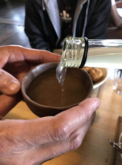 僕らは「マイぐい呑」に自然酒「天水棚田」をそそいで、お祝いの乾杯をしました。