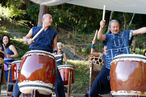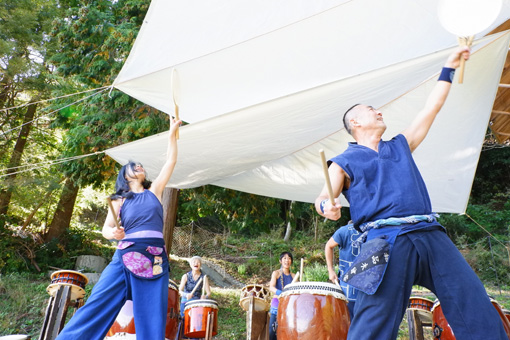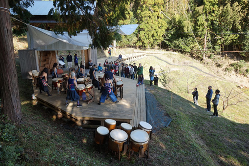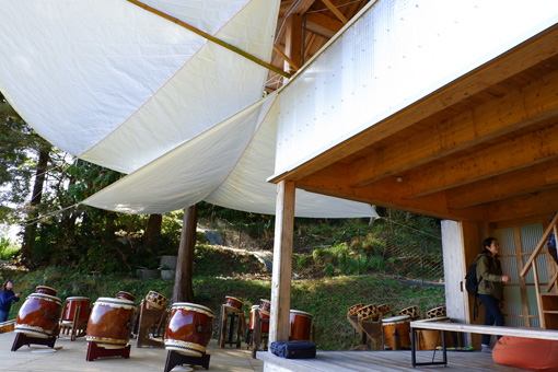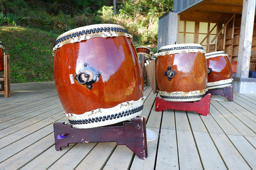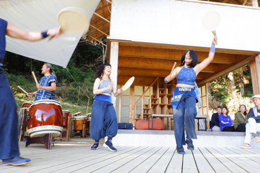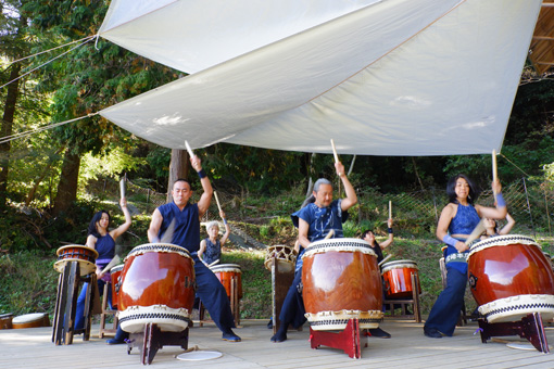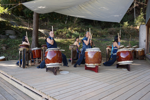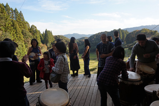 ドドーンと、棚田のウッドデッキで打たれた和太鼓のサウンドは里山全体へ響き渡りました。