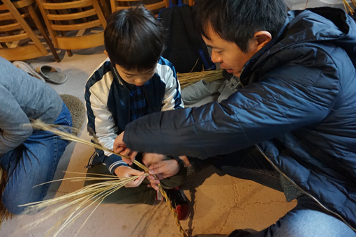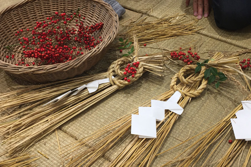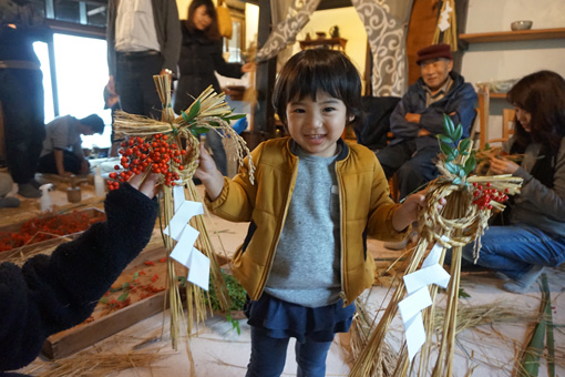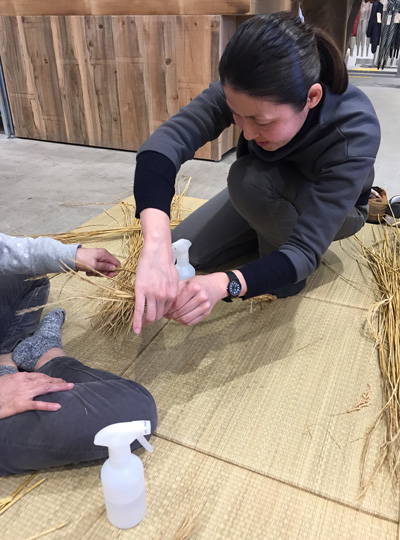 しめ縄飾りづくりは都会の人にとってとても人気のあるワークショップで、どこの会場も盛況です。お金を出せば何でも買える時代だからこそ、あえて自分の手でつくる体験に価値があります。