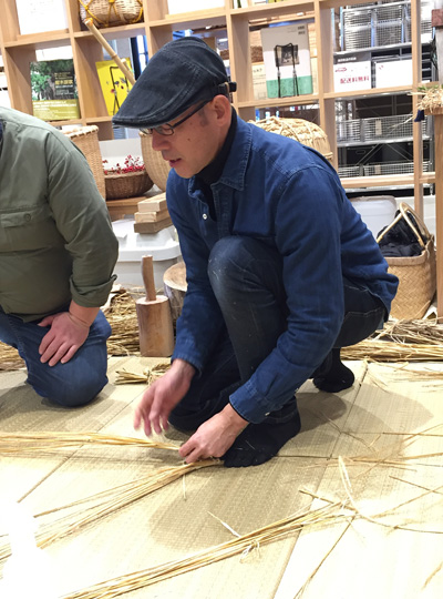 2014年から鴨川里山トラストで始まったしめ縄飾りづくりは、今では全国の無印良品店舗に広がり、それぞれの地域特有のしめ縄飾りを作っています。