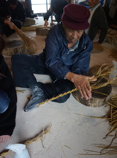 里山が凛とした空気に満ち、空がシャープに澄み渡る季節になると、僕は毎年しめ縄飾りを多くの人とつくります。