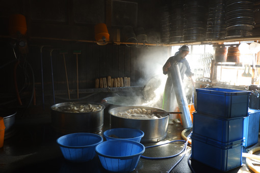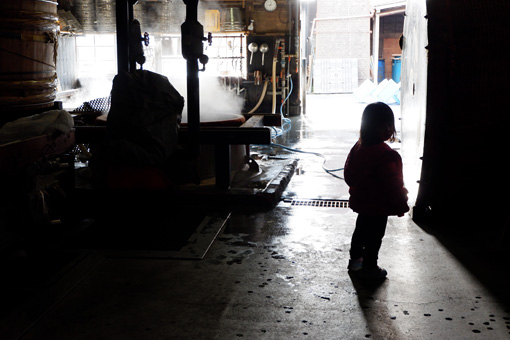 木造の古い大きな酒蔵の中で、陽の光に照らされて働く蔵人の姿は、ハッとするほど美しい陰影を見せてくれます。
