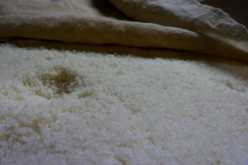 そして、麹室で発酵中の米麹を「どうぞ、つまんで食べてみてください」と食べさせてくれるのです。