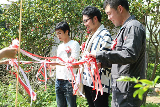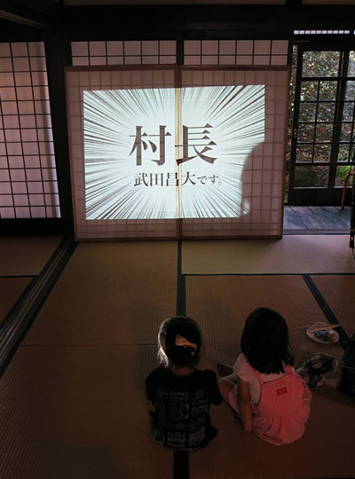 シェアビレッジの運営メンバーである、村長(武田昌大)、家主(丑田俊輔)、家守(柳澤龍)、大名(松橋拓郎)の4人によるテープカットを行い、いよいよ古民家の中へと進みます。