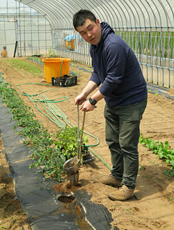 「アスパラは収穫してすぐ生で食べるのが一番美味しいんです」という農家ならではのアスパラの楽しみ方の話から、アスパラづくりへのこだわりを聞いた後は、実際に苗を植える体験も行いました。