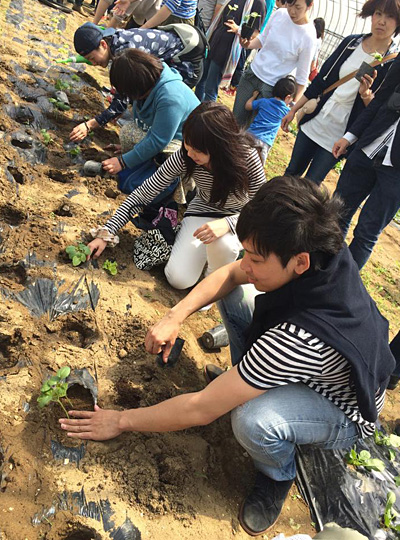一人ひとりが自分の場所に大切に苗を植えます。「こんな感じでいいのかなー」と少し不安がりながらも村民たちは土に触れ、大満足の様子でした。