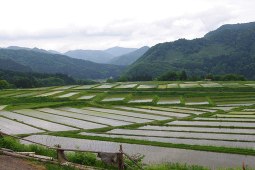 水温や気温が低い棚田でうまく分けつさせるために水の深さを3cmにし、超浅水状態を保つのがポイントです。