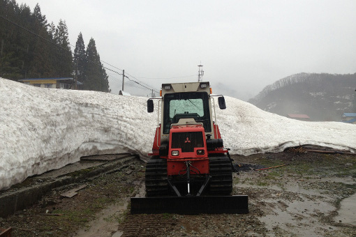 1年の半分は雪に閉ざされる北秋田での米づくりは、3月下旬の除雪から始まります。まだ薄暗く霧がかった早朝5時、防寒具を着て機械に乗り込みます。