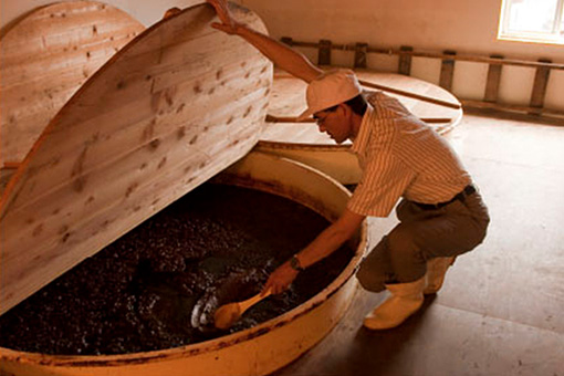 しょっつるへのこだわりは2つ。「原料はハタハタと塩のみで造ること」と、「生臭くない、上品でまろやかな味を造ること」です。しょっつるはハタハタのもつ自己消化酵素により1年以上の時間をかけ熟成させます。「秋田の気候だと発酵に適した30度を越える日が1年に1週間ほどしかないから、うちでは3年かけてじっくり熟成させているよ」。と諸井さんは言います。