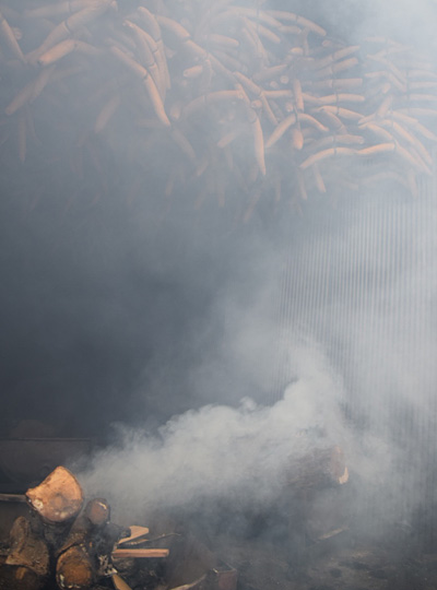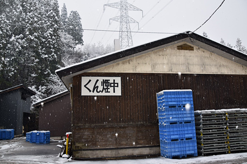 いぶし小屋と呼ばれる小屋から煙が登り、なんとも言えない香ばしい香りがあたりを包みます。