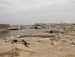 彼に案内してもらった、港の姿は、船も一艘もなくなっていました。どこか港だったのかその痕跡はまったくわからなくなっていました。港沿いに隣町まで案内してもらいました、再開準備のために復旧活動を休みなく行っている原町の火力発電所、そして20キロ圏内立ち入り禁止地域近くの人のいない町の姿、震災と同時に、原発汚染という大きな課題を背負った彼らの複雑な思いと、なんとかそれでも立ち上がっていこうという前向きな彼らの想い、まさにそれは「フロンティア」という組織の名前に宿った彼らの精神そのものと言えます。彼らは今、苗の販売だけでなく、地元の子供達を秋田県田沢湖に連れて行って思い切り運動をさせてあげたいという計画をたてています。そこでも応援してくれるのが、高校時代の生徒会の他県の仲間達だとか。多くの若い人たちの連携がこの町を早く元気にしてほしいと思うばかりの取材でした。