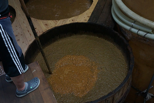 「今でこそ機械を使って大量生産をするところもありますけどね、もともと醤油作りっていうのはこうやって知恵と技と心を合わせて作るものですからウチは天然醸造にこだわっているんです」