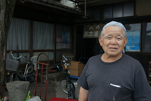 挨拶を交わした時、おじさんの後ろに掲げられたのれんが目に入った。"岡本醤油醸造場"と書いてある。