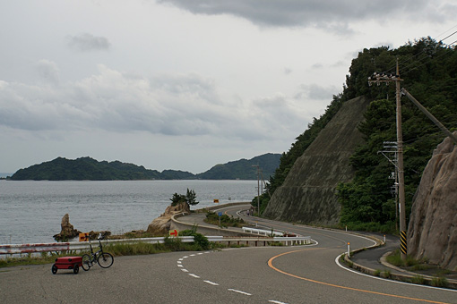 突然の訪問にも関わらず一時間もの蔵案内をしてくれた岡本さんに礼を言い、再び島を走り出す。雨も今のところ小康状態だ。
