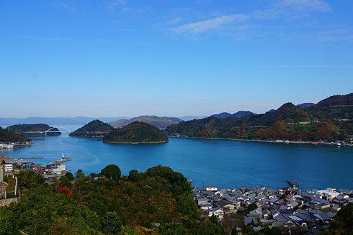 大崎下島から豊島へ、豊島から上蒲刈島へと架かる橋から望む景色はいちいち絶景で、立ち止まる回数が増える。