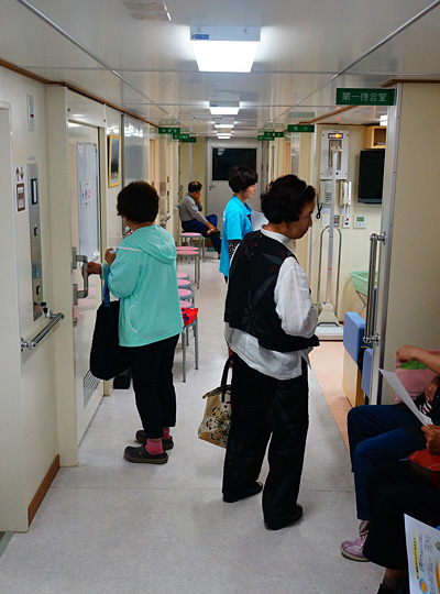 船の入口にいた男性に「これは何ですか?」と尋ねると文字通り海を移動する病院だと教えてくれた。済生丸という名前の船は済生会病院によって運営されており、レントゲンや血液検査までを行える設備を有しているのだという。図々しくも中を見学させてもらったのだが、船内だけを見ればそこは確かに病院だったし、病院の"ニオイ"もした。
