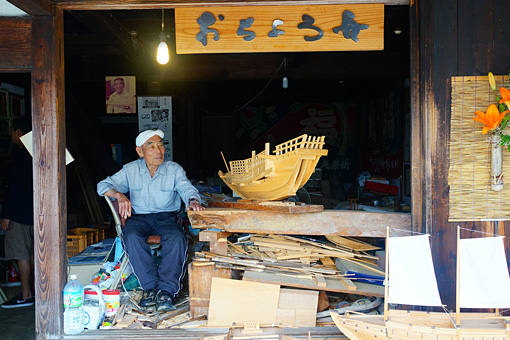 工房には遊女の写真や絵画、それに春画が飾られていた。それらとともに宮本さんは、御手洗の繁栄の時代を知る数少ない生き証人なのだった。