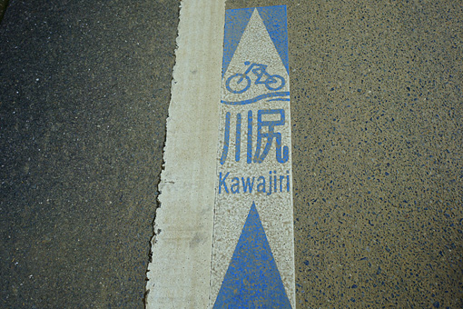 名残惜しくも御手洗を後にして、隣の大長地区を過ぎると道路に青いラインが引かれていた。隣の愛媛県・岡村島から延びるとびしま海道にぶつかったことを示すラインだ。