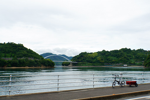この先の安芸灘大橋でとびしま海道は広島県本土にぶつかり、さざなみ海道に接続する。今日の午後はさざなみ海道を走り、呉からかきしま海道の途中にある倉橋島あたりまで走ろうと思っていたけれど、ちょっと難しそうだ。隣の九州地方も大雨だというから、明日の天気の保証もない。無理に自転車で先へ進み、もし途中でさらに天気が悪化すれば進退窮まってしまう。この先を諦めて走りを切り上げるには、列車の走る本土に近いこの場所がラストストップだったのだ。