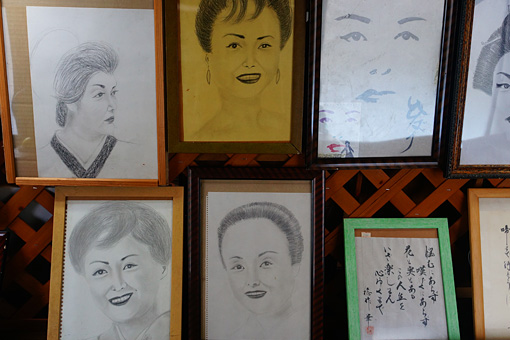 店の中に入ると、とうとう四方八方を数十人の美空ひばりに囲まれた。奥からおじさんとおばさんが出てきた。このおじさんが熱狂的なひばりファンなのだそうだ。といってもファンになったのは、彼女が亡くなった後らしく、その反動のせいかこうして肖像画を書き続けているようだ。