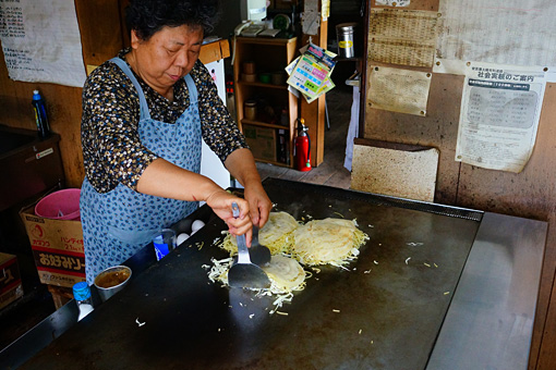 おばさんが焼いてくれたお好み焼きはダブルで550円という信じ難い安さだった。豚肉入り焼きそばがたっぷり入っていて味も悪くない。昨日のみはらし食堂もそうだが、この島の飲食店はお店のシステムや価格設定がむちゃくちゃである。