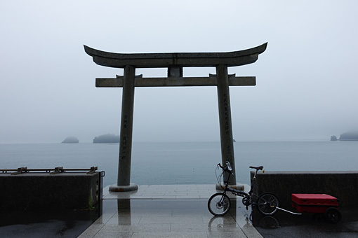 造船所や町役場を横目に海岸線に沿って走る。こんな天気だけに人気は全く無い。これはもしかしてただ走り抜けるだけの旅になってしまうんじゃ