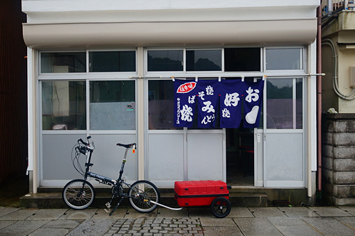 蒲刈大橋を渡り、下蒲刈島にやってくる頃には目を開けていられない程に猛烈な雨脚がバラバラとレインウェアを叩いた。雨宿りをしようにも、なかなか良い場所が見つからない。石畳で演出された島の歴史地区を抜けた先にようやくお好み焼き屋の暖簾を見つけ、そこに逃げ込んだ。全身濡れねずみの格好でお店に入るのは心苦しかったが、店のお母さんの「ええよ、ええよ、気にせんで」という言葉に甘えることにした。