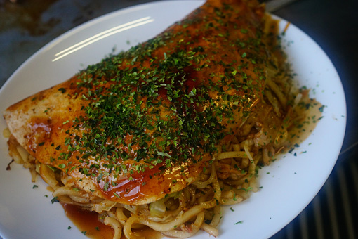 まもなく僕の肉玉入りお好み焼きができあがった。アツアツのお好み焼きを唇にソースや青のりをつけながら頬張る。ボリューム満点で一つ430円だ。やっぱりこの辺りの飲食店はどこかポジティブなおかしさに満ちている。