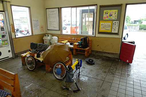 駅舎はがらりとしていて人気がなかったことをいいことに、荷物を広げて少しでも水気を切りながら自転車をパッキングした。