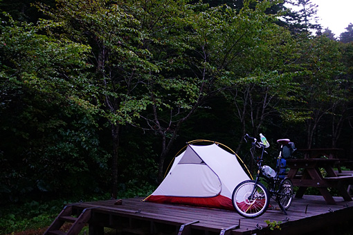 この日は登山口にも程近いキャンプ場にテントを張り、自転車をスーツケースにパッキングした後は、近くの温泉に行ったり、食料の買い出しをしたりして翌日に備えた。