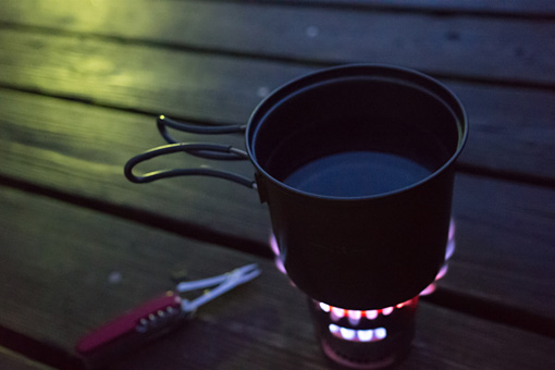 雲はかかっていても、雨の心配はなさそうだったから、フライシートはかけずにテントを組立てた。インナーテントだけで過ごした方が新鮮な空気が循環して気持ちがいいし、翌日、結露や朝露で濡れたシートを乾かす手間も省けるから僕はできるだけフライシートはかけない派だ。