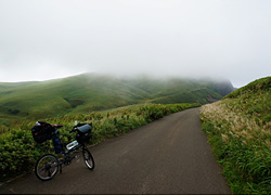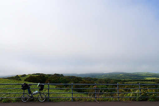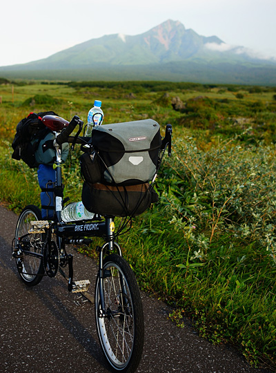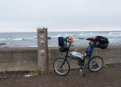 僕らはしばし並走しながら自転車談義に花を咲かせた。方やピカピカに磨き上げられたランドナー(ツーリング用自転車)に、コシのあるキャンバスコットンのサイドバッグとハンドルバッグを装着したオールドクラシックなスタイル、一方の僕は折り畳み自転車に最小限の荷物で軽量コンパクトを突き詰めたスタイルで、姿形は対極なのに同じ自転車旅行者というギャップが面白い。自転車旅行にもいろいろな流派があるのだ。
