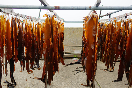 金田岬とスコトン岬を結ぶU字型の湾に位置する船泊の民家の軒先のあちこちでは昆布が干されていた。洗濯ばさみで無造作に干されているけれど、このあたりで採れる利尻昆布(礼文島で採れるものもそう呼ぶ)は昆布の中でも最高級に入る。昆布は出汁文化の和食に取って欠かせない食材であるが、その主な生産地は北海道である。