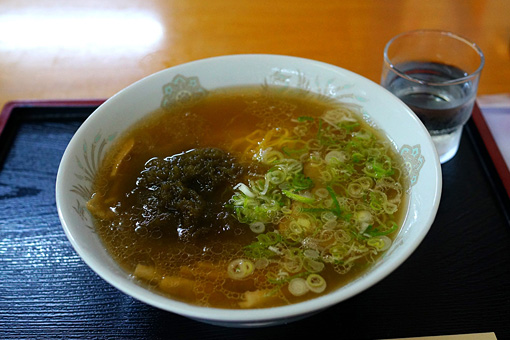 昼食がまだだったので、まずは鴛泊(おしどまり)港近くの食堂へ。名産のウニ丼を食べてやろうと入ったのだが、3500円という値段に尻込みしてしまった。実は前日も礼文島北西部のスカイ岬でウニ丼を食べようとしていたのだけれど、ちょうどツアーバスが訪れた後ということで、売り切れで食べられずじまいだった。そこのウニ丼は2500円で、まぁそんなものかな、と思っていたのだが、さすがに3500円は予算オーバーである。仕方がない、ウニとは縁がなかった、ということにしておこう。結局、800円のとろろ昆布ラーメンを注文した。