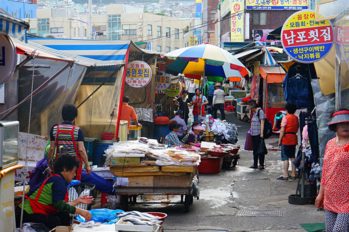 著しい温気が漂う夏の釜山は、冬に滞在した時とは違って見えた。しゅんと落ち着き払ってがらりとしていたはずの駅前は、賑やかな人通りを取り戻していた。どう見ても紛い物のブランド服が並ぶ地下街の洋服屋、ハングル文字に漢字、キリル文字が入り乱れる多国籍タウン草梁洞、妖しい光の溢れるカフェの前に座り込んだ客引きのオババ。アジアらしい喧騒と猥雑さがそこかしこに溢れていた。