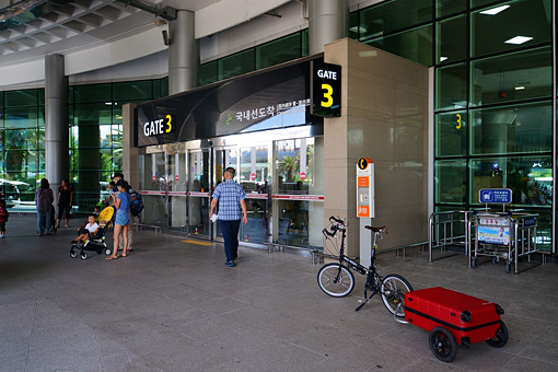 一時間のフライトで無事、島に降り立った僕は、荷物を受け取り、さっそく自転車を組み立てた。その一部始終をベンチで眺めていたおじさんが話しかけてくれた。が、韓国語だったのでよく分からなかった。するとおじさんはさっと言葉を英語に切り替えてくれた。