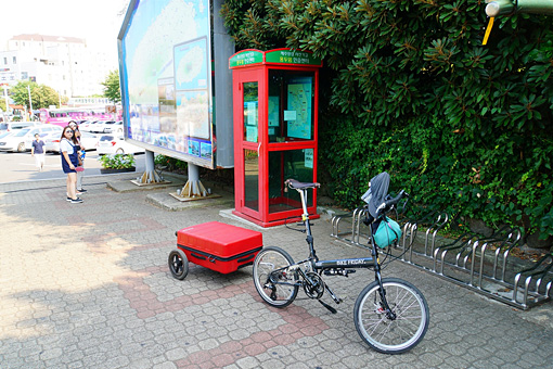 ロンドンを彷彿とさせる真っ赤な電話ボックス。中にスタンプが置いてあって、それを手帳に押していくのが基本ルールだ。これは韓国全土の自転車道で共通のルールで、スタンプが走破の証明になり、スタンプを全部集めると証明書を発行してもらえる仕組みになっている。