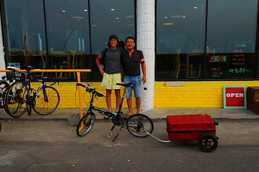 キムさんは大の自転車好きで、最近は特に折り畳みチャリにハマっているらしい。話を聞けば、ちょうど二週間前にサイクリストのためのカフェとゲストハウスをオープンさせたそうで、お店の前をちょうど僕が通りかかったのを見かけて追いかけてきたそうなのだ。