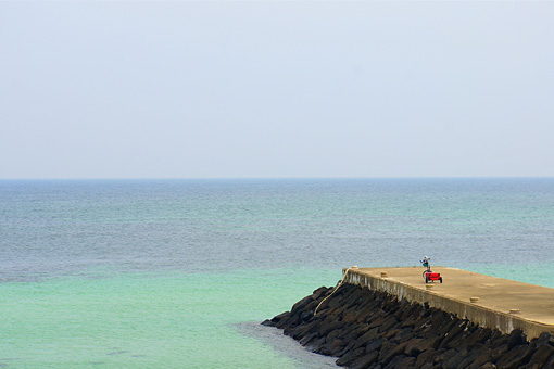 島を一周する環状路だったから、道を見失っても海岸沿いを走っていればいずれまた自転車道にぶつかるという気楽さもよかった。だから血眼になって水色のラインを追わなくたっていい。これが、縦断路のような一方向への道だと、いつの間にか自転車道を見失わないように走ることが目的になってしまうことがあって、走るというよりも走らされているような窮屈さがあった。範囲の限定された島だから、自転車道との相性が良かったのだ。
