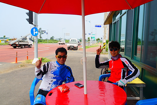 幸いなことといえば彼らは近くのホテルでアルバイトする大学生だったということ。もし二人が僕と同じように済州島一周に挑戦するサイクリストだったら、さぞ更に気まずい空気が流れただろう。